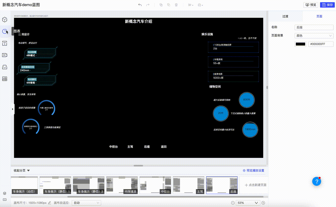 下面以“新概念汽车介绍”的大屏搭建来介绍,改编自真实客户案例改编。