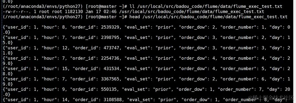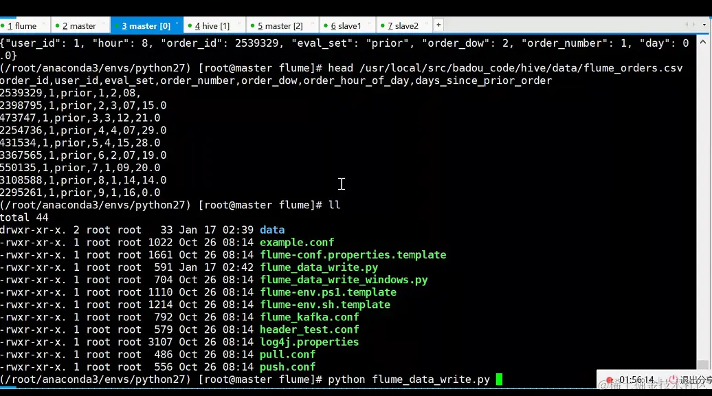 5、执行python flume_data_write.py, 模拟将后端日志写入到日志文件中
