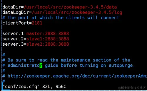 zookeeper配置:1. vim zoo.cfg 2. vim data/myid 是第几台写数字几