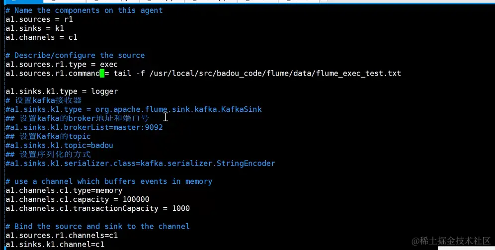 ./bin/flume-ng agent --conf conf --conf-file ./conf/flume_kafka.conf -name a1 -Dflume.root.logger=INFO,console