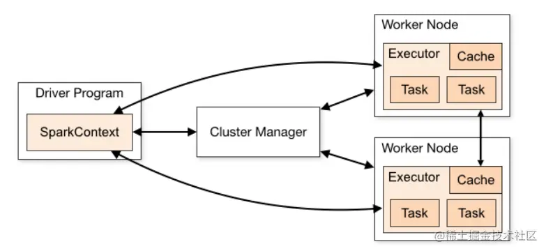 Spark 架构主采用 Master/Worker 主从架构进行设计,由以下几部分组成: