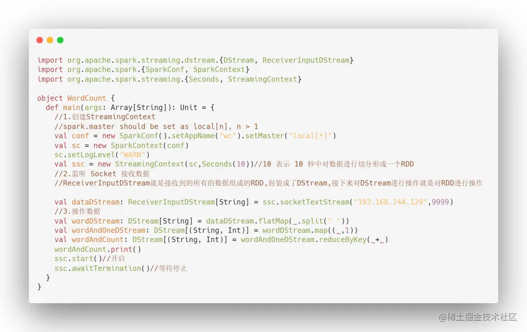 22、使用 Spark Streaming 写一个 WordCount?