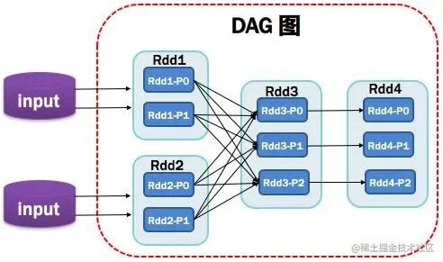 DAG(Directed Acyclic Graph 有向无环图)指的是数据转换执行的过程,有方向,无闭环(其实就是 RDD 执行的流程);