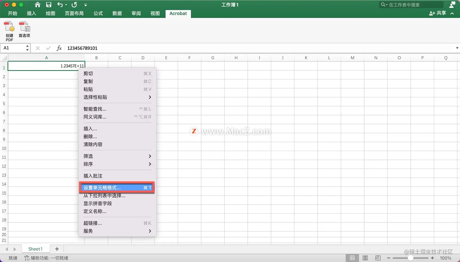 1、点击需要改变格式的单元格,右键选择【设置单元格格式】,如图: