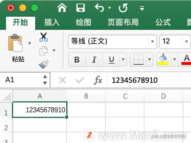 在单元格中输入的数字是123456789101,此时输入的数字共计12位时,就会发现通过调整列宽的方法不能用了。