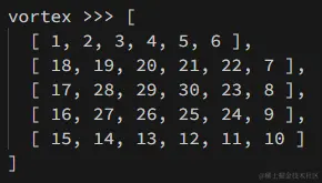 下面的 vortex 函数就是我们要实现的函数,告诉你行和列的数量,让你生成这个二维数组。函数原型如下: