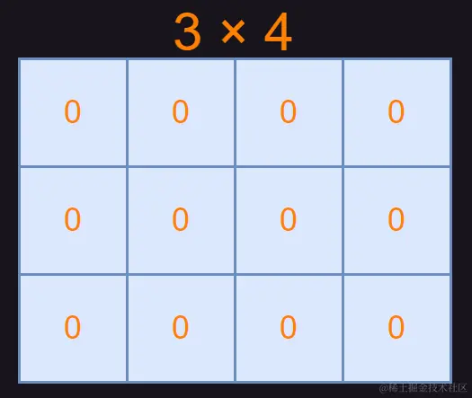 这样我们就得到了一个指定行数指定列数的全是 0 的二维数组。