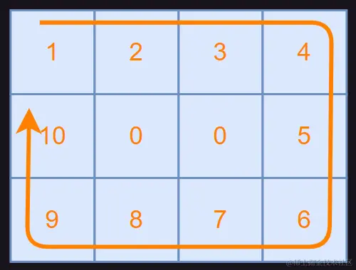 这个算法题虽然不难,但是考察了我们对数组和循环的掌握程度,以及对方向和坐标的理解能力。