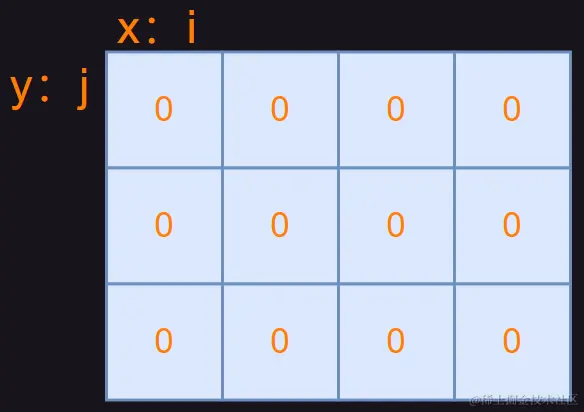 我们可以使用两个变量 i 和 j 来表示当前位置在数组中的坐标,分别对应横坐标和纵坐标。