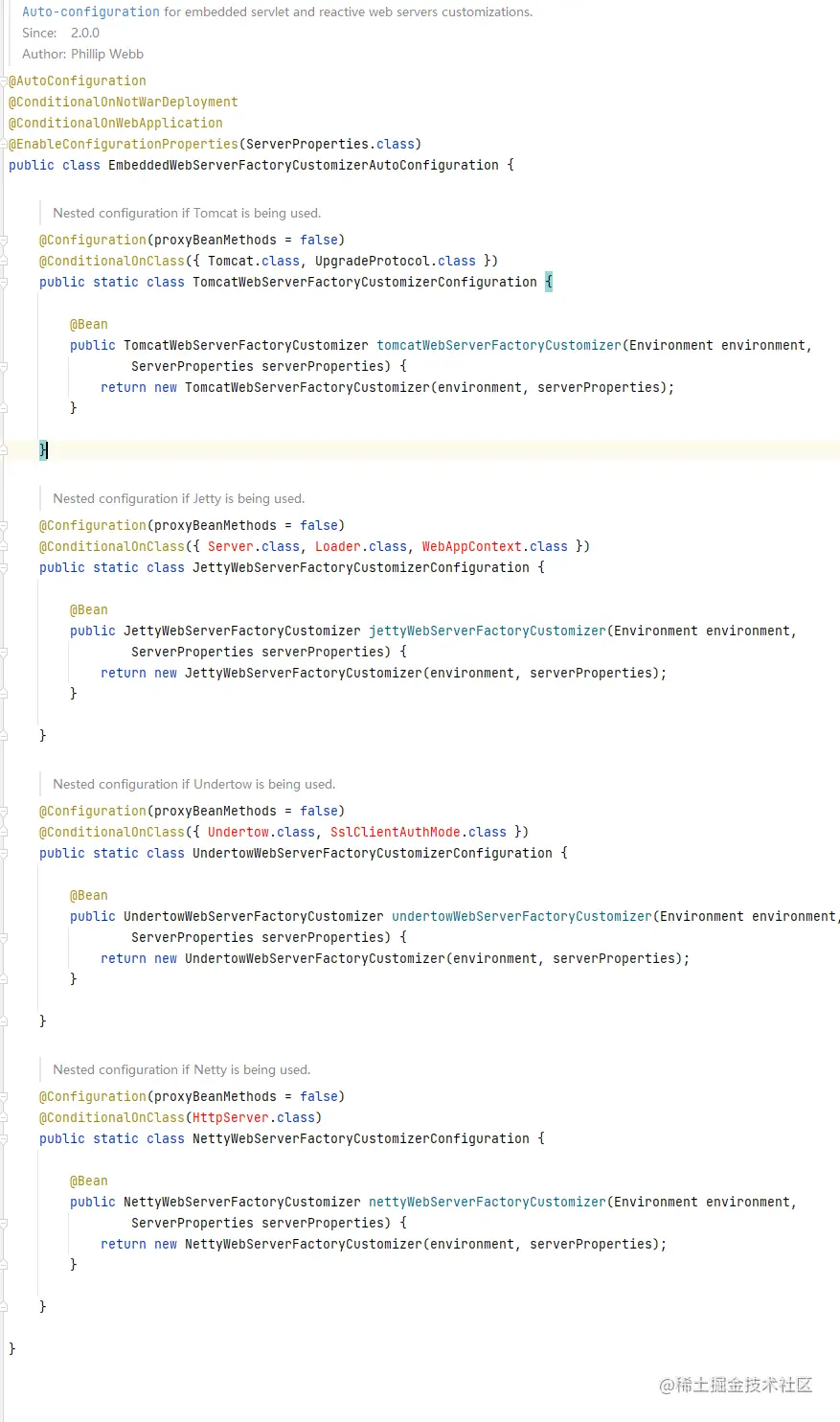 其他web容器可以根据实际情况配置,从ServerProperties配置文件中可以查看对应的Web容器的相关配置。