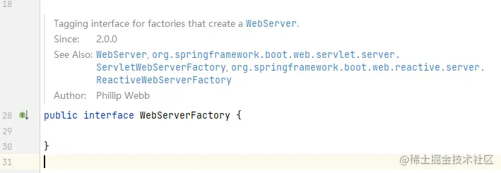 WebServerFactory是一个接口,没有定义任何方法,它就创建Web服务器的工厂的标记接口,Spring中很多地方也是这样的风格。