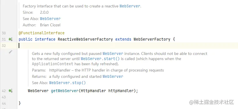 这个接口重要的两个子接口,也是我们需要关注的两个子接口分别是ServletWebServerFactory和ReactiveWebServerFactory,它们两个都定义了一个方法getWebServer。
