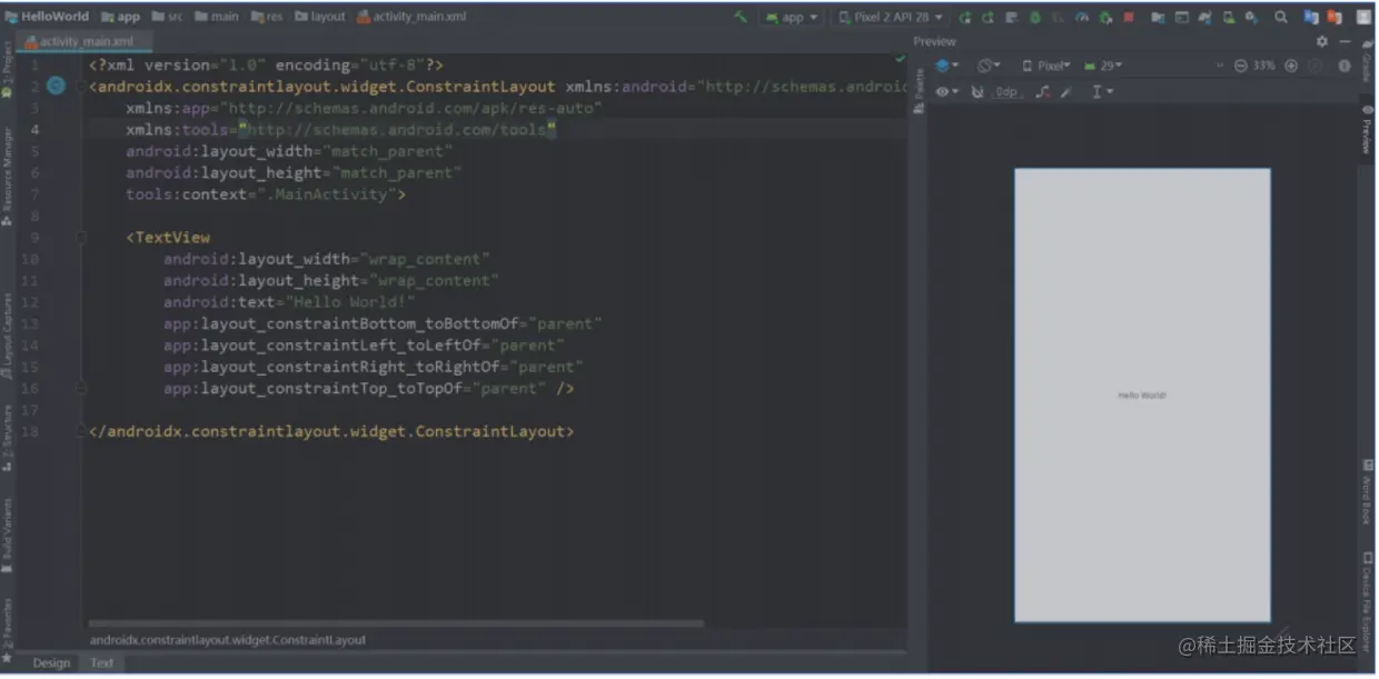 android:text="HelloWorld!"