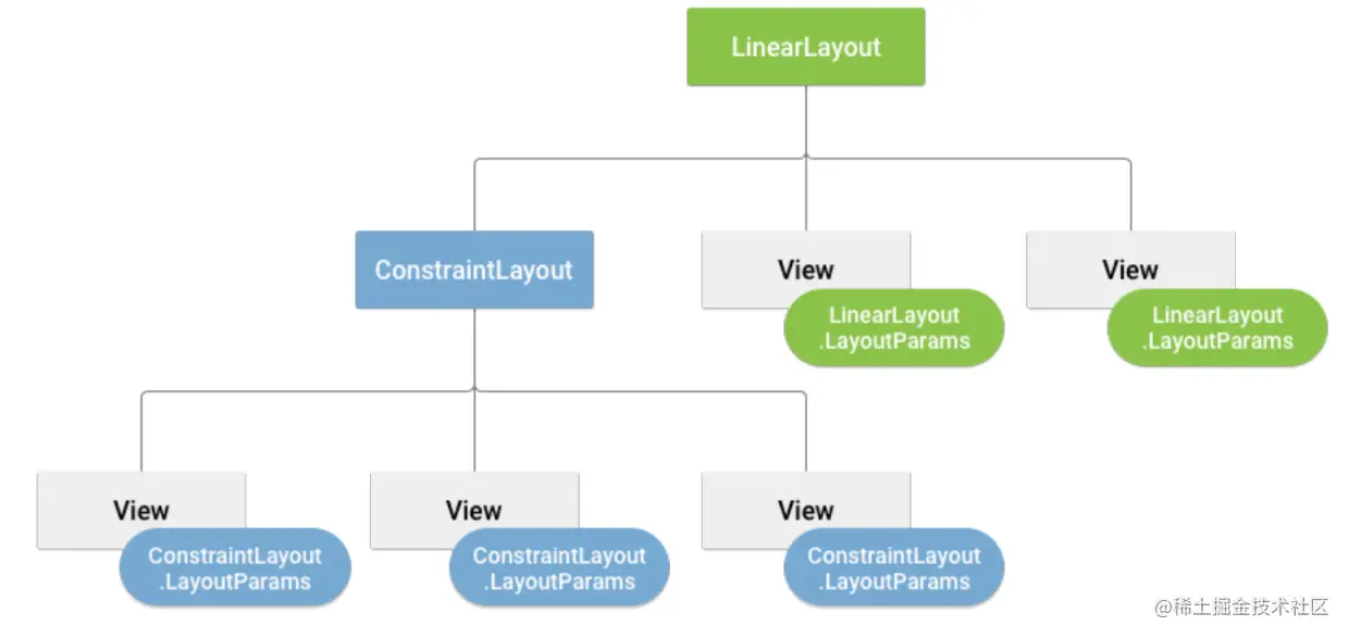 View对象通常称为“微件”,可以是众多子类之一,例如 -Button 或 TextView 。ViewGroup对象通常称为“布局”,可以是提供其他布局结构的众多类型之一,例如LinearLayout或ConstraintLayout