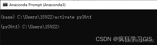 在这里,由于我是希望在一个名称为py36tf的Python虚拟环境中配置matplotlib库,因此首先通过如下的代码进入这一环境;关于虚拟环境的创建与进入,大家可以参考文章# Anaconda创建、使用、删除Python虚拟环境。