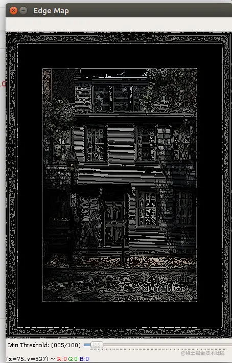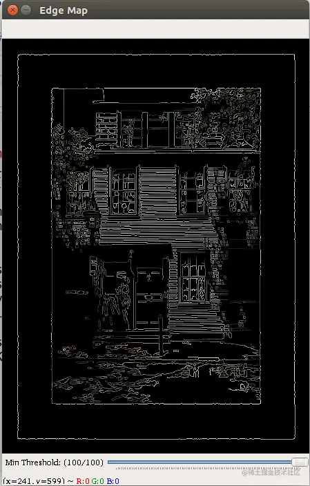 注意阈值的不同造成的影响,可以看到阈值很低的时候线条更多,当然"伪边缘"更多,当阈值很高的时候,"伪边缘"减少了,但也丢失了更多的细节.所以需要根据自己实际的图片数据去调参.