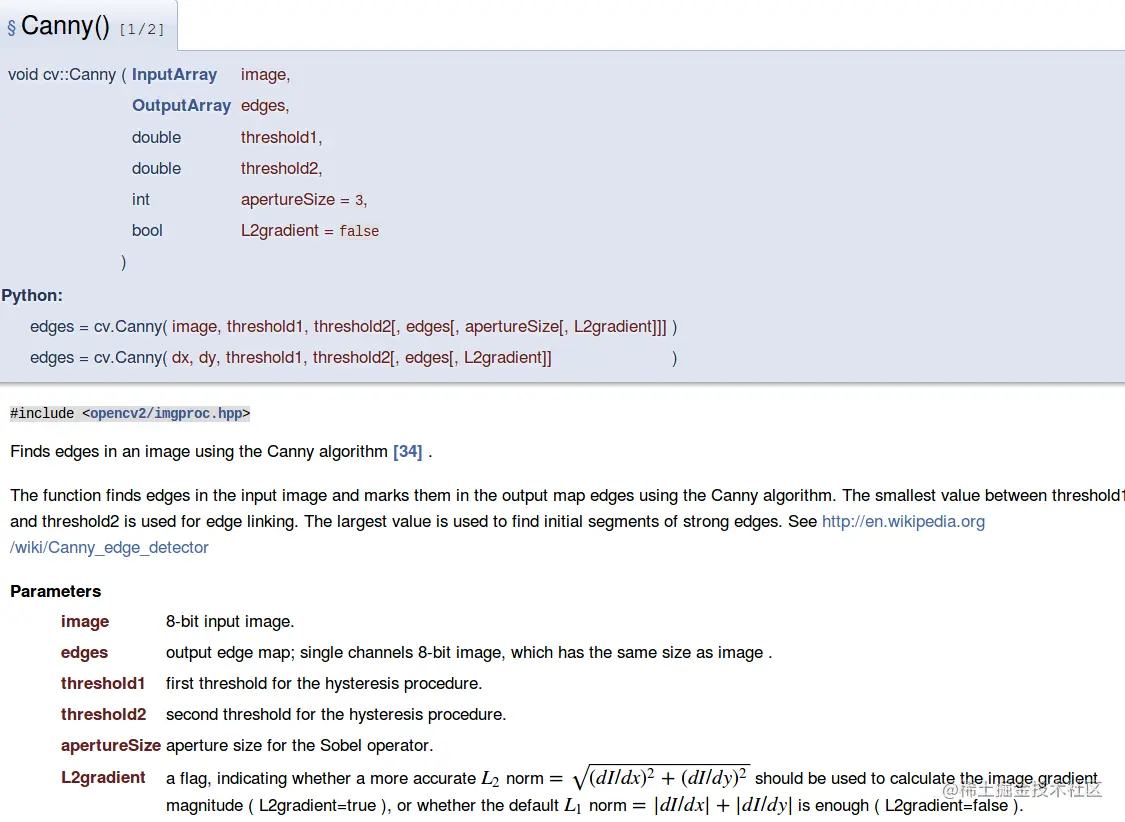 参数3,4表示低阈值和高阈值,L2gradient默认false,表示是否用开平方的方式计算梯度的大小.