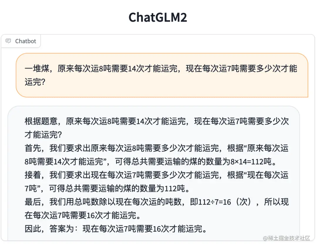 相比于初代模型,ChatGLM2-6B 多个维度的能力都取得了提升,以下是一些对比示例。更多 ChatGLM2-6B 的可能,等待你来探索发现!
