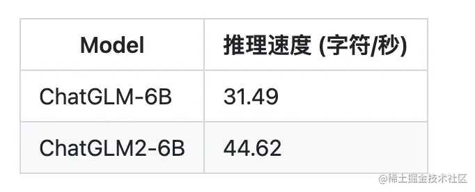 ChatGLM2-6B 使用了 Multi-Query Attention,提高了生成速度。生成 2000 个字符的平均速度对比如下