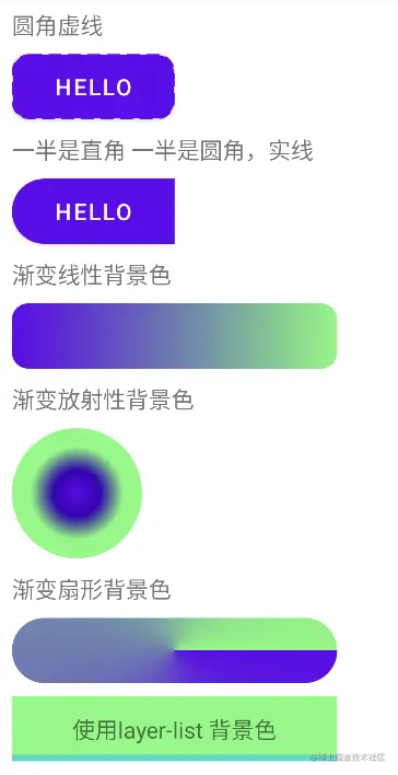 android:text="渐变线性背景色" />