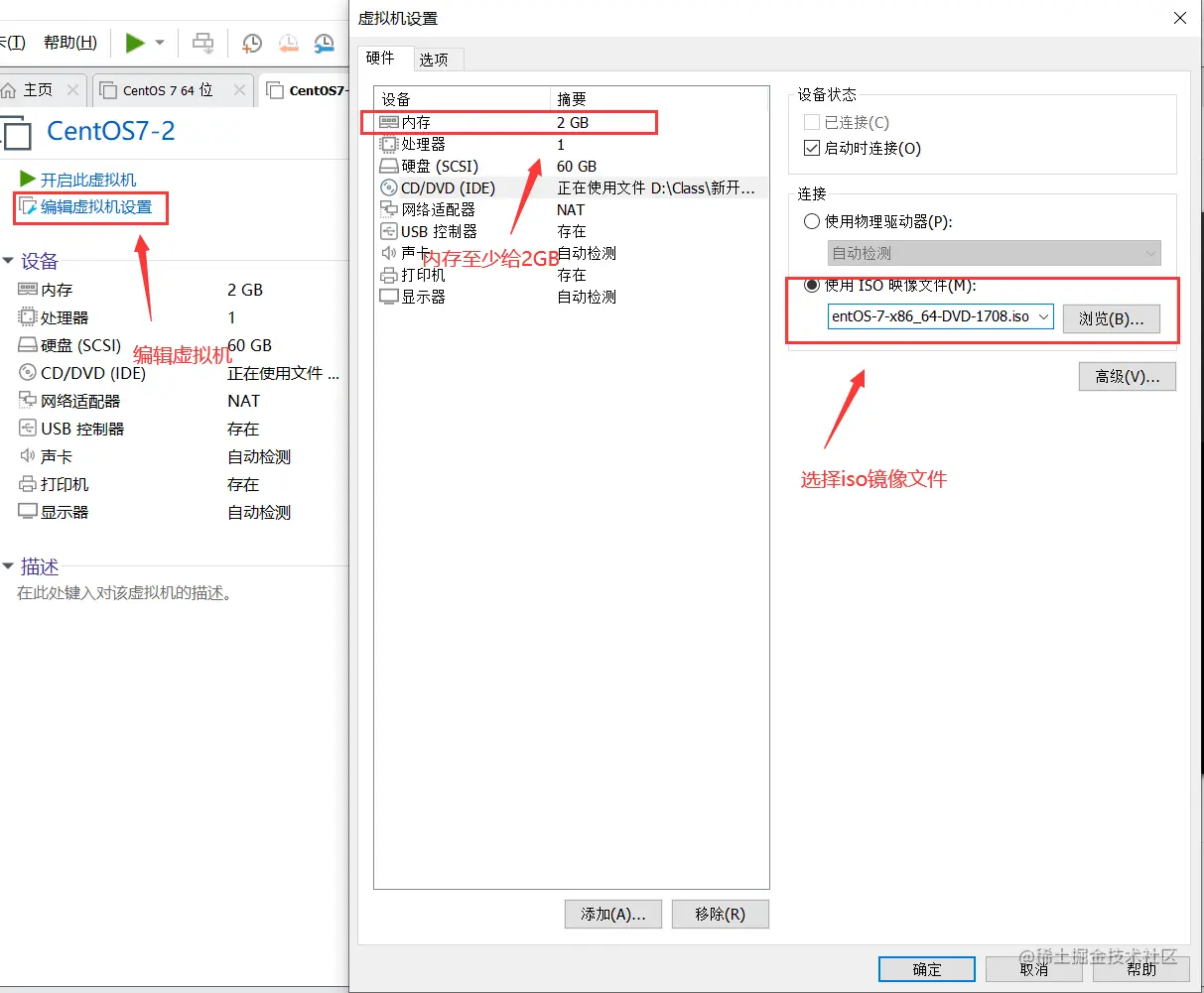 配置虚拟机硬件配置,内存应至少有2G,否则虚拟机运行不起来。
