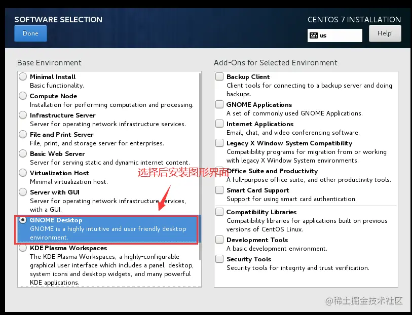 不选择的话,会进入纯文字界面,选择GONE图形界面可以生成界面。