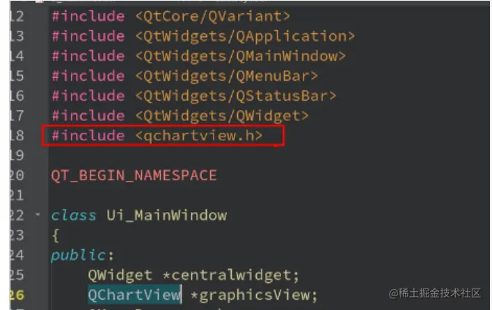 - 疑问二: ui_mainwindow.h文件中已经有qchartview.h头文件了,不认识QChartView?