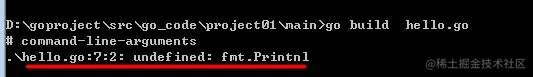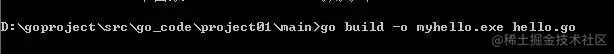 ● 在该源文件目录下,通过 go build 对 hello.go 文件进行编译。可以指定生成的可执行文件名