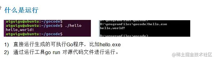 ● 如果我们是直接 go run go 源代码,那么如果要在另外一个机器上这么运行,也需要 go 开发 环境,否则无法执行。