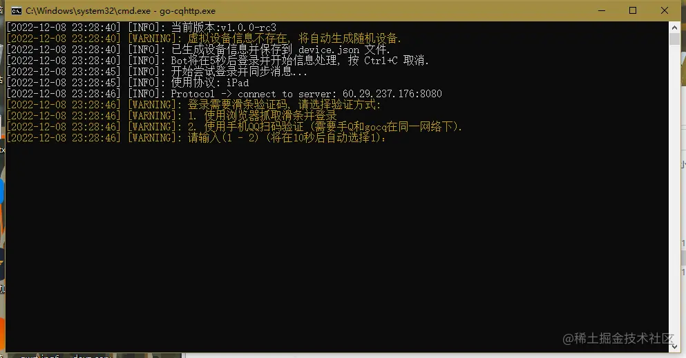 注意:如果一直提示账号密码错误,可以把密码删掉,强制扫码登录,如果扫码也不能正常登录可以打开QBot文件夹下的device.json文件,将里面的protocol修改为2,当然你也可以试试滑条登录,如果这种方式依然不行,试试电脑连接手机热点再扫码