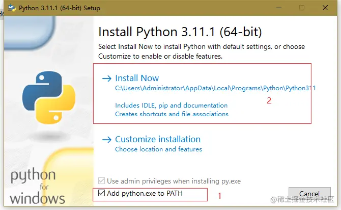 Windows系统双击 python-3.11.1-amd64.exe 安装Python环境
