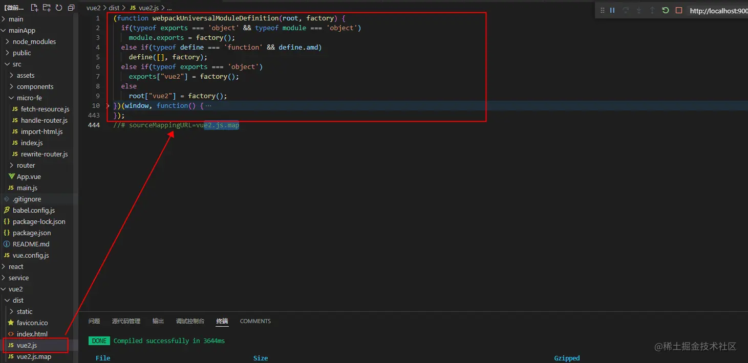 根据以上知识,通过umd模块化打包后的js文件,我们可以通过window.拿到子应用的内容