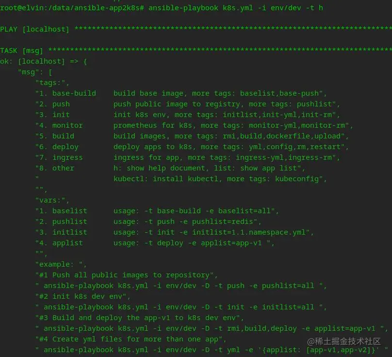 ansible-playbook k8s.yml -i env/dev -D -t dockerfile -e applist=app-v1 -C