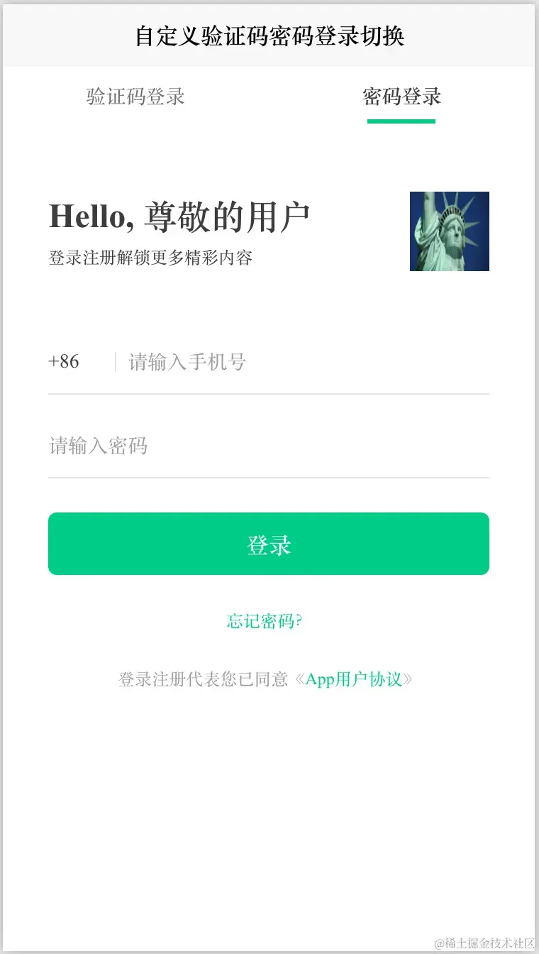 前端Vue自定义验证码密码登录切换tabs选项卡标签栏标题栏 验证码登录模版 密码登录模版,