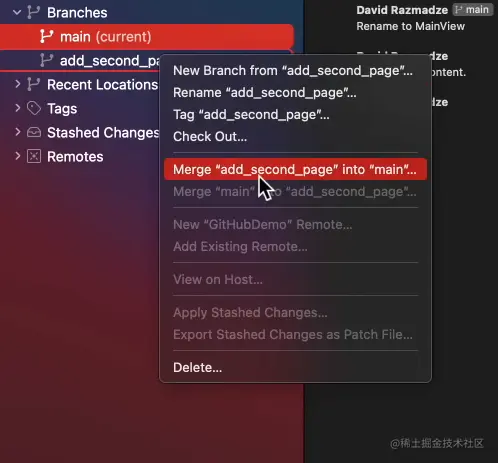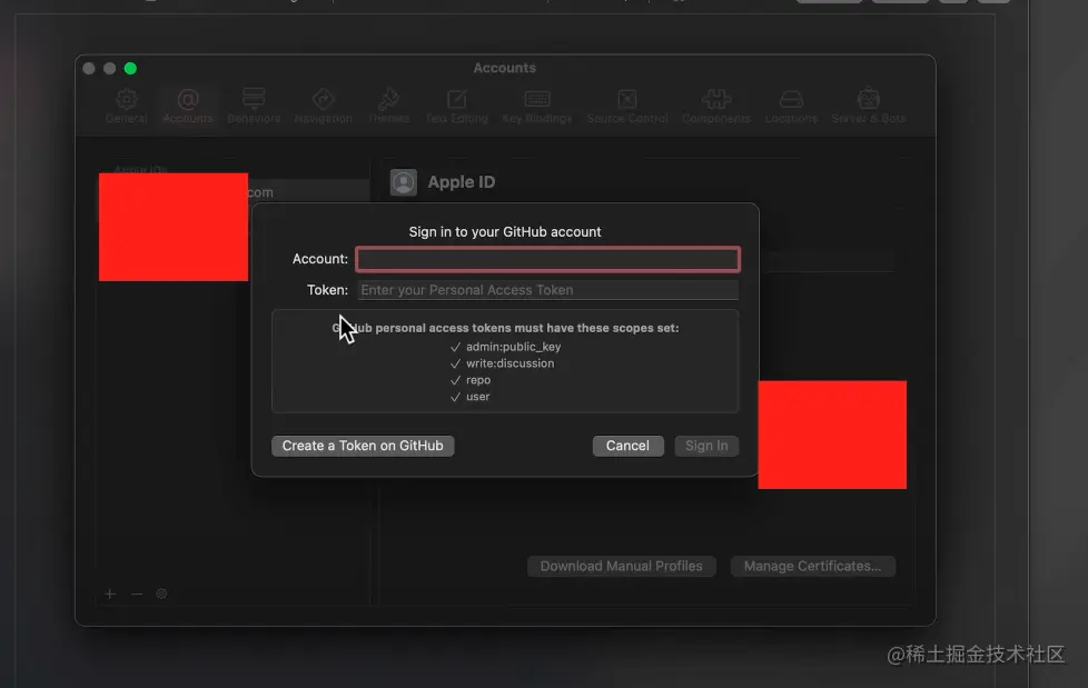 How to create a Git repository and commit projects in Xcode. tiantian_cool 2023-06-27 75 阅读1分钟 1 First, associate your Xcode with a Git account and set the SSH Key to None. 2 Then, go to Git settings to set up a token. 3 Commit the code. 4 Create a Git project. - remote 5 Create a branch. 6 Merge the branches.