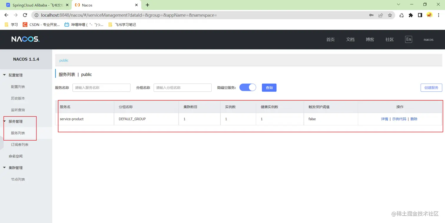 商品微服务已经注册到nacos