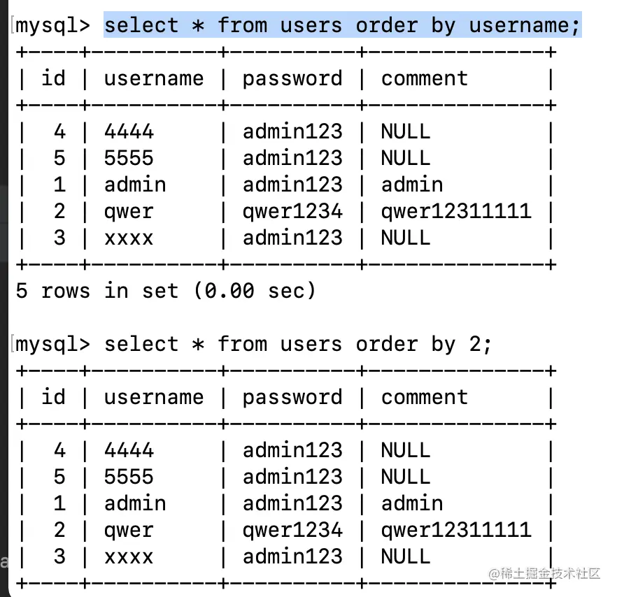 mysql中使用order by**进行排序,**不仅可以是字段名也可以是字段序号。所以可以用来判断表中字段数,order by 超过字段个数的数字就会报错。