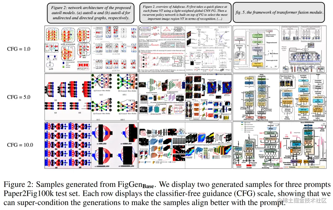 下图 3 展示了 FigGen 的更多生成示例。要注意样本之间长度的变化,以及文本描述的技术水平,这会密切影响到模型正确生成可理解图像的难度。