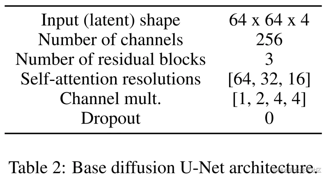 最后是潜在扩散模型。下表 2 展示了 U-Net 的网络架构。研究者在感知上等效的图像潜在表示中执行扩散过程,其中该图像的输入大小被压缩到了 64x64x4,使扩散模型更快。他们定义了 1,000 个扩散步骤和线性噪声调度。