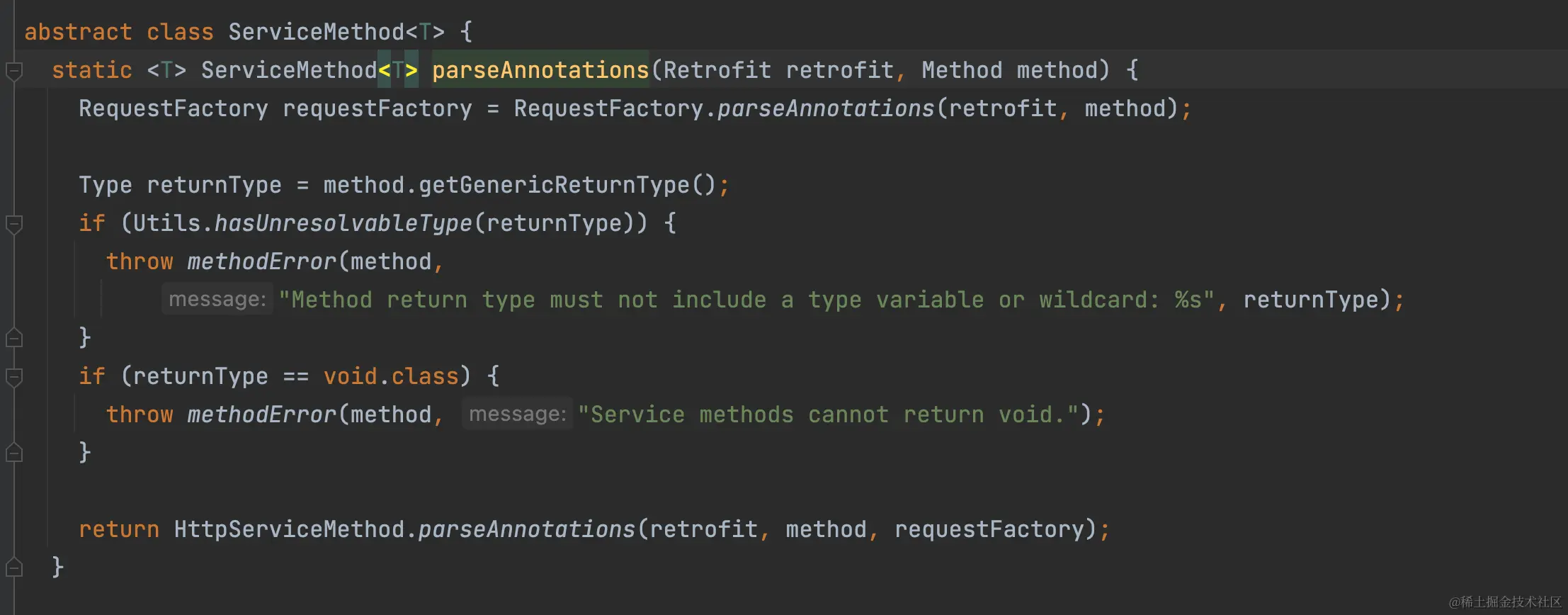 ServiceMethod.parseAnnotations是包级私有的,我们可以在当前工程创建一个一样的包,这样就可以直接调用该函数了。 核心实现代码如下
