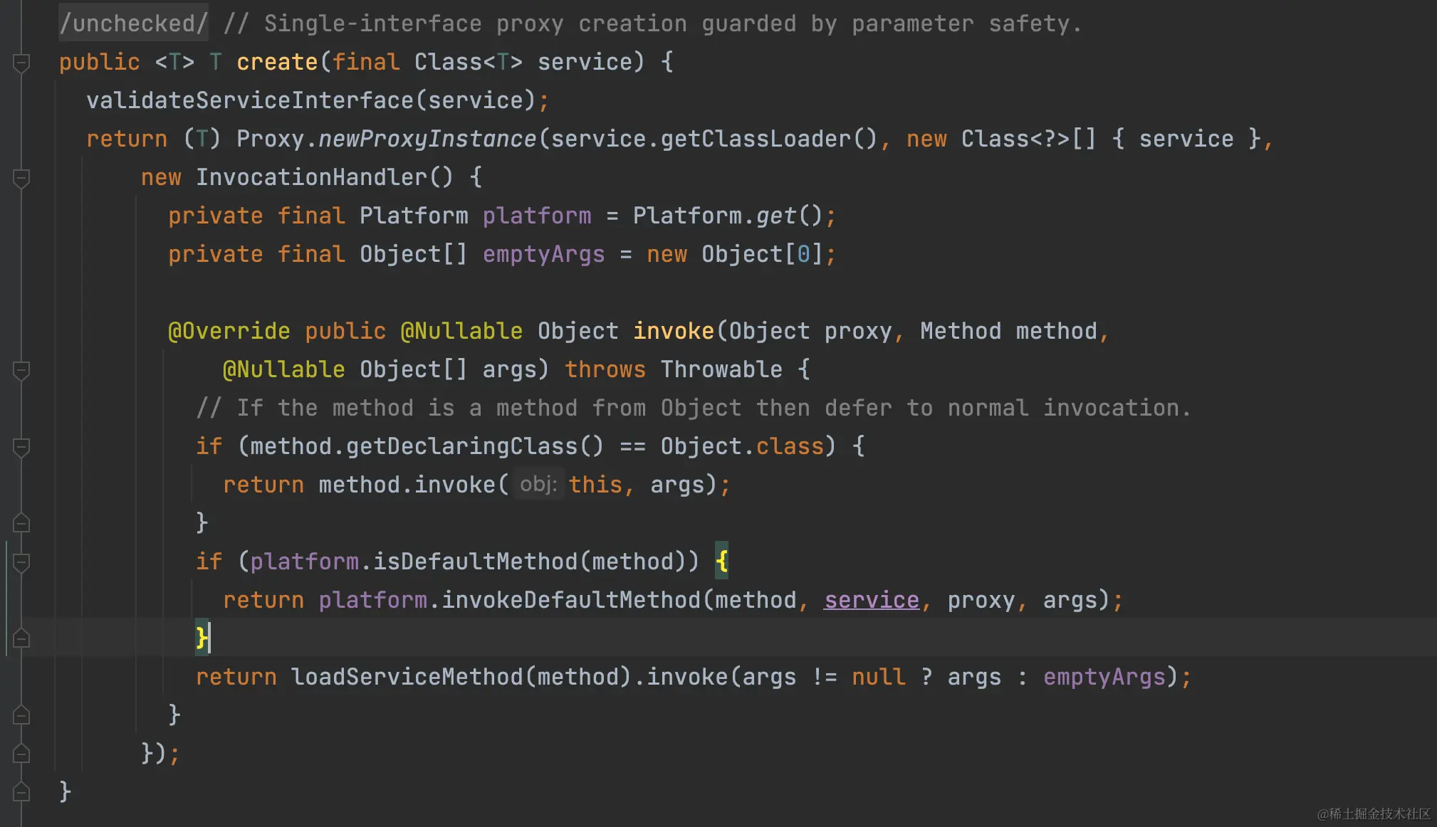 当我们调用Retrofit.create(final Class service) 函数时,会生成一个该抽象接口的动态代理实例。