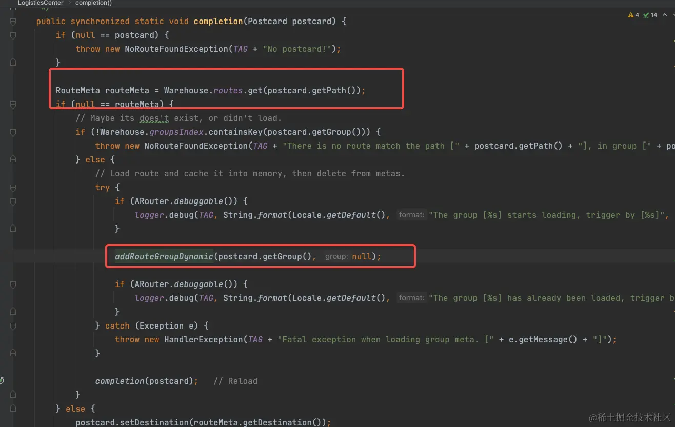 当首次调用时,其对应的RouteMeta 实例尚未生成,会继续调用 addRouteGroupDynamic函数进行注册。
