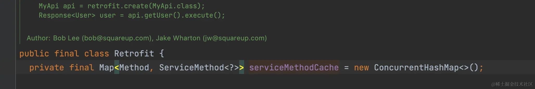 从源码实现上可以看出,对ServiceMethod的实例做了缓存处理,每个Method 对应一个ServiceMethod。