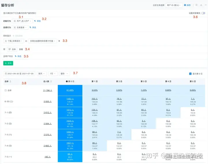 留存分析的步骤如下: