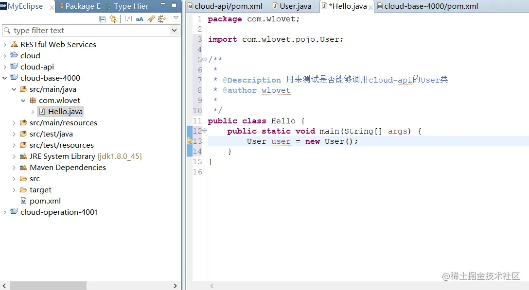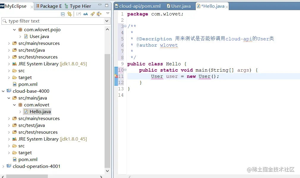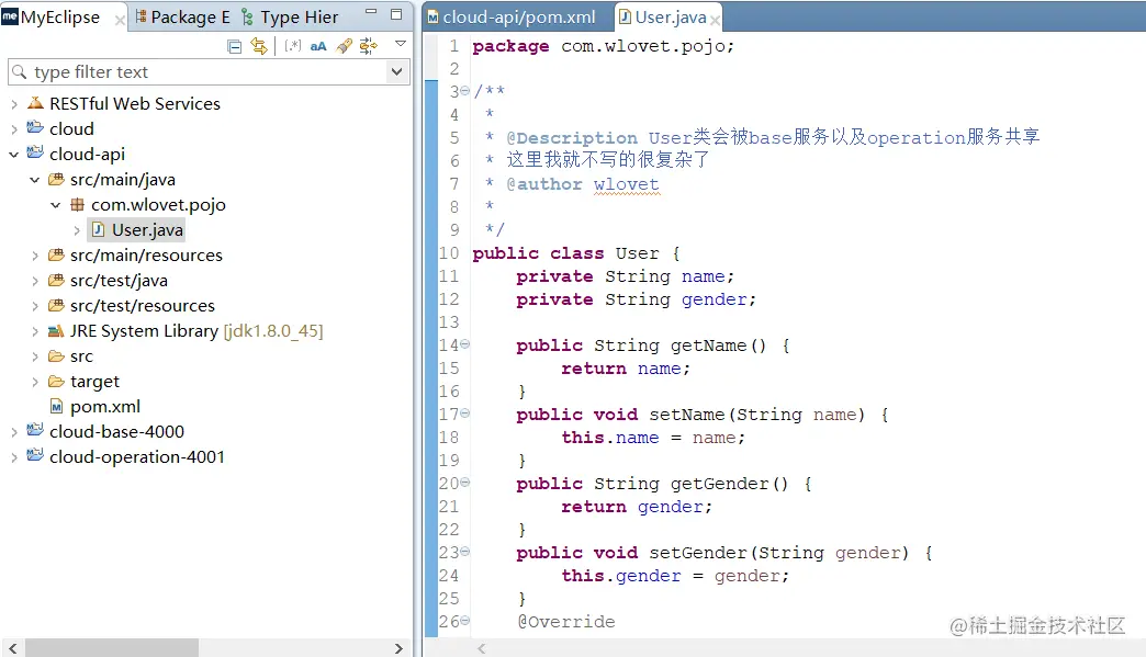 第六步:在cloud-api中新建被其他服务共享的类User,项目结构如下图: