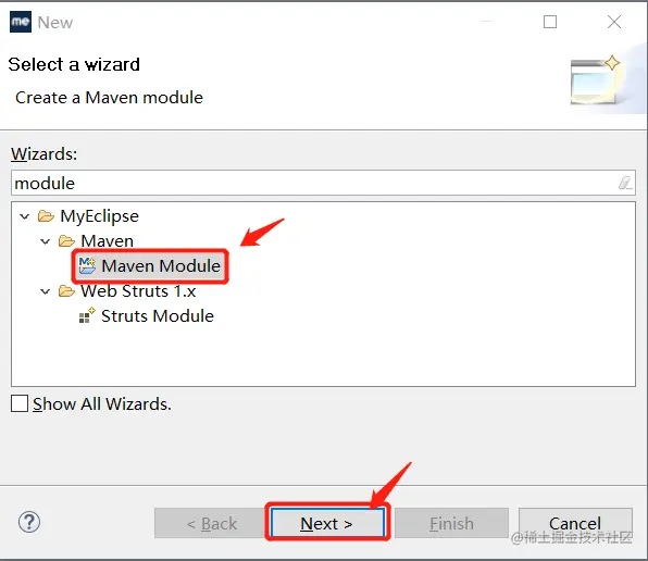 选中cloud项目,右键点击打开菜单,选择new—>other,搜索module,点击next