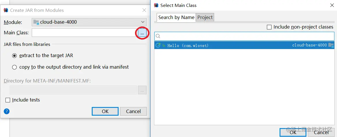第四步:选择启动类,如果是SpringBoot则选择SpringBootApplication作为启动类