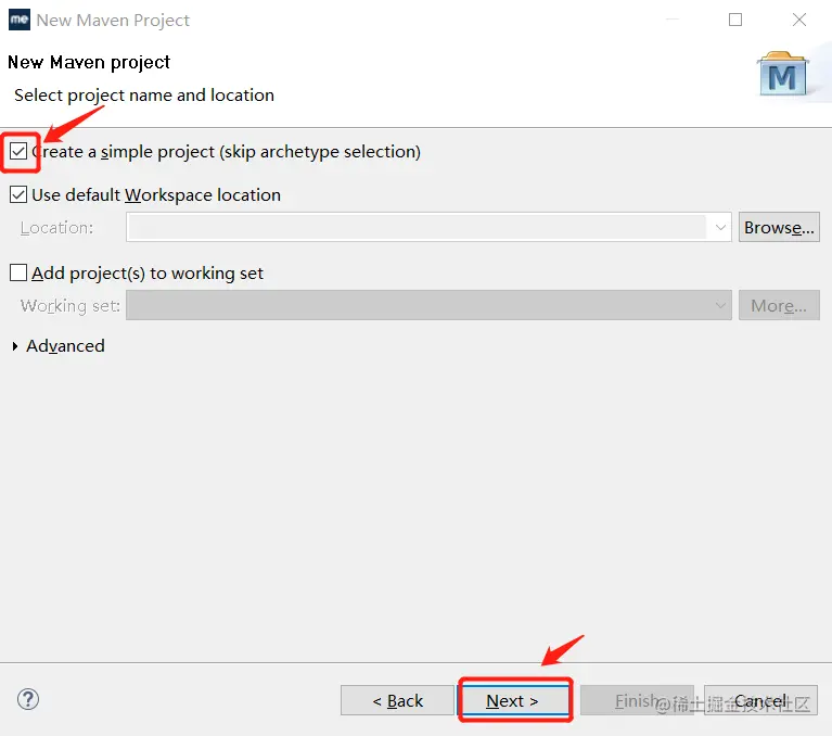 第二步:选择‘Create a simple project(skip archetype selection)’,点击next