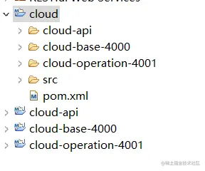 我们发现cloud、cloud-api、cloud-base-4000、cloud-operation-4001中都存在一个pom文件。其中