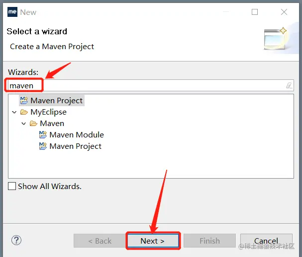 第一步:打开MyEclipse,选择File—>New—>Other,搜索maven,点击next